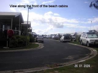 George & Tosca's caravan was opposite our cabin on the beachfront so it was well set up for us to socialise. We spent a lot of common time at Trevor & Margaret's cabin as it had a larger verandah & more space for all of us for meals etc. We could either cook on the BBQ/kitchen or take a short stroll to the shops for take away meals or to eat at a restaurant.
